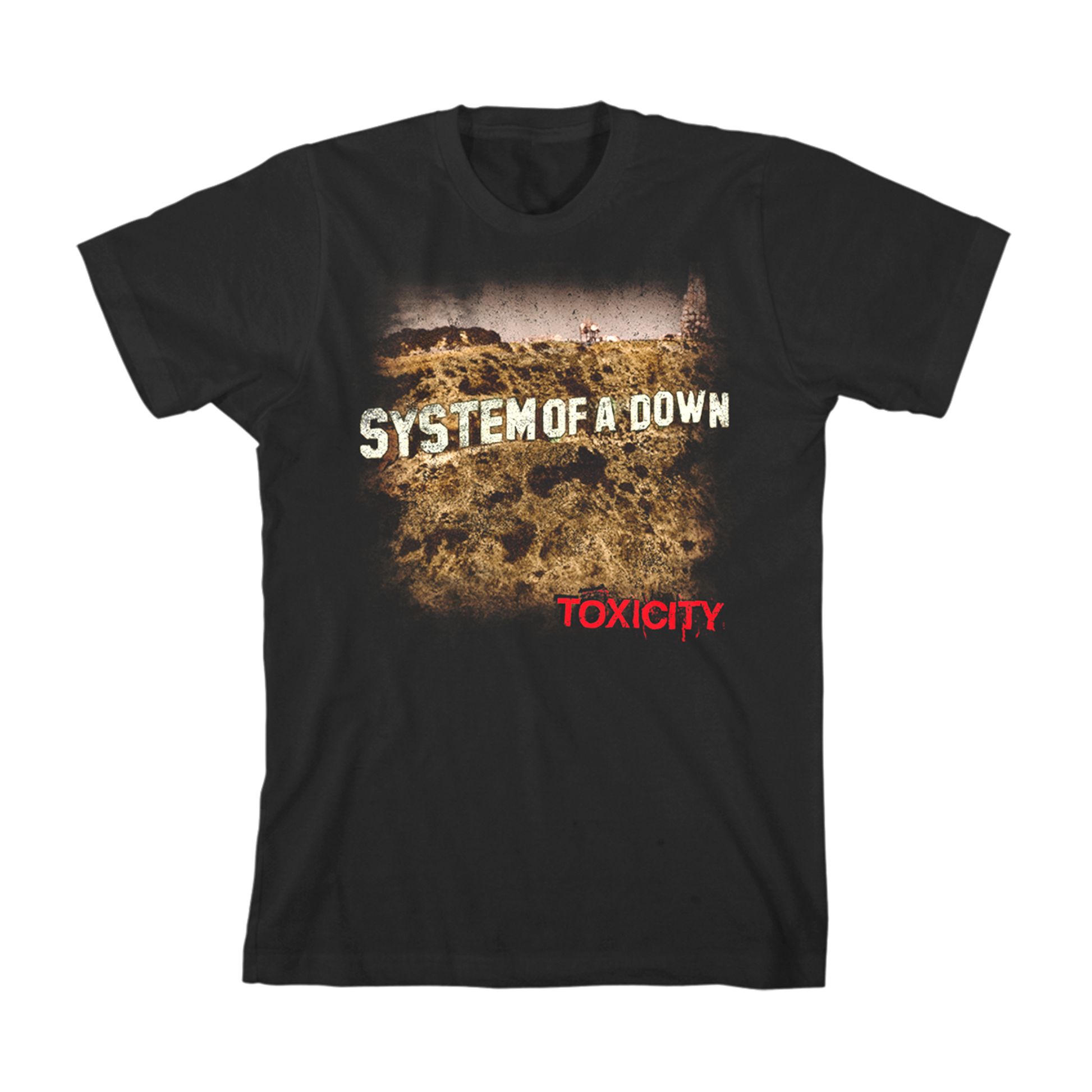 The Toxicity T-Shirt is a classic fitting unisex t-shirt in black featuring the Toxicity album artwork on the front. Constructed from a cotton/polyester/rayon tri blend.